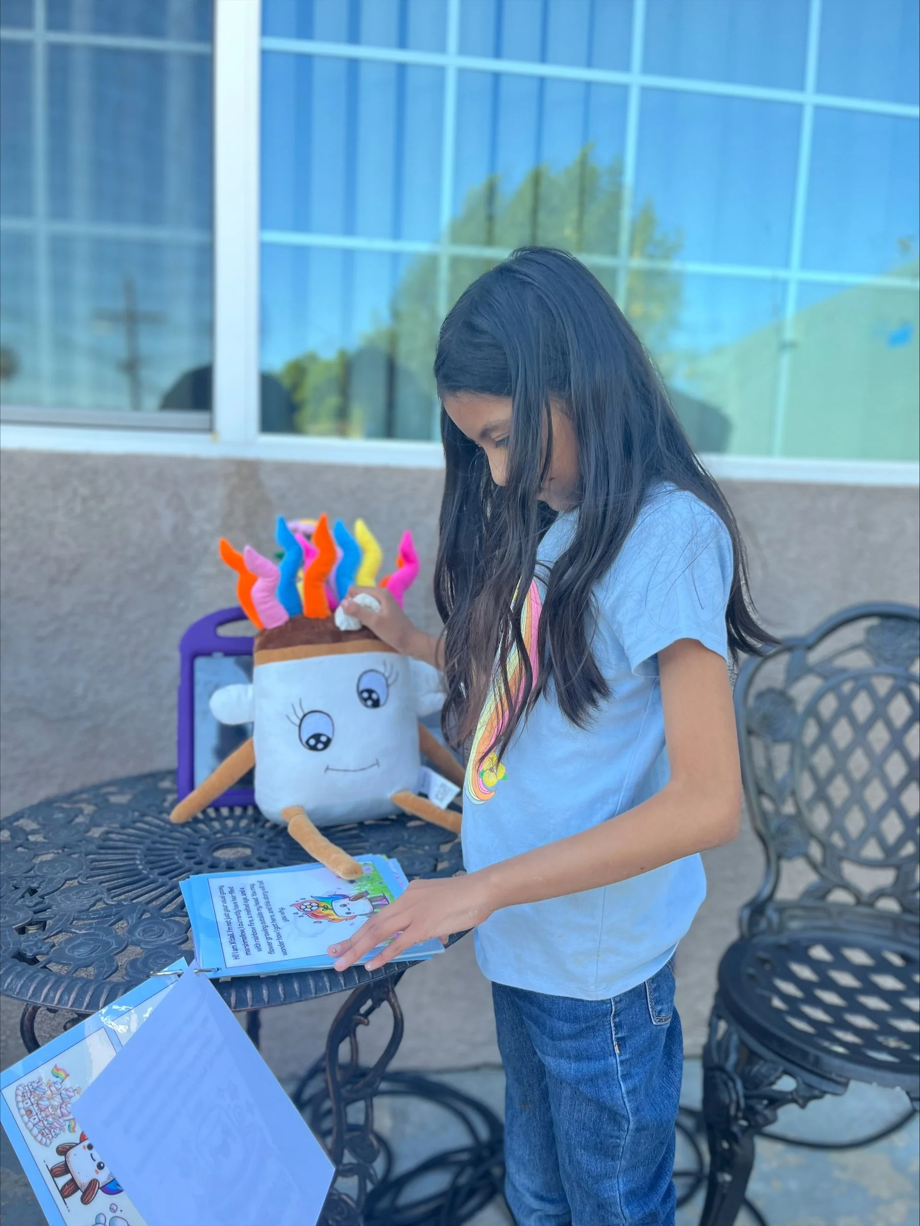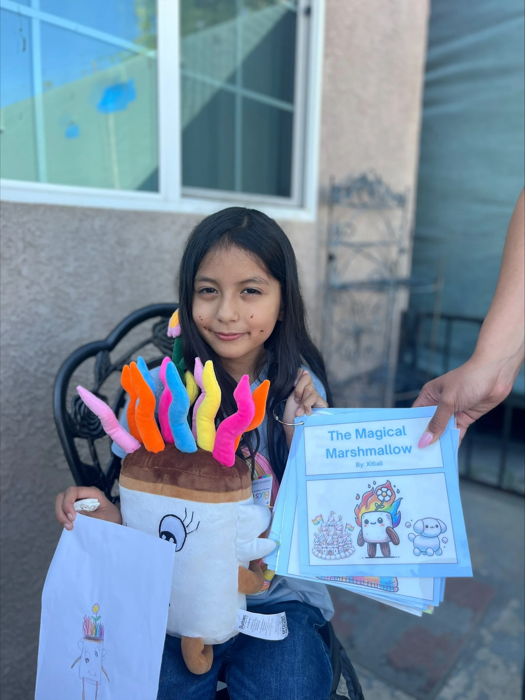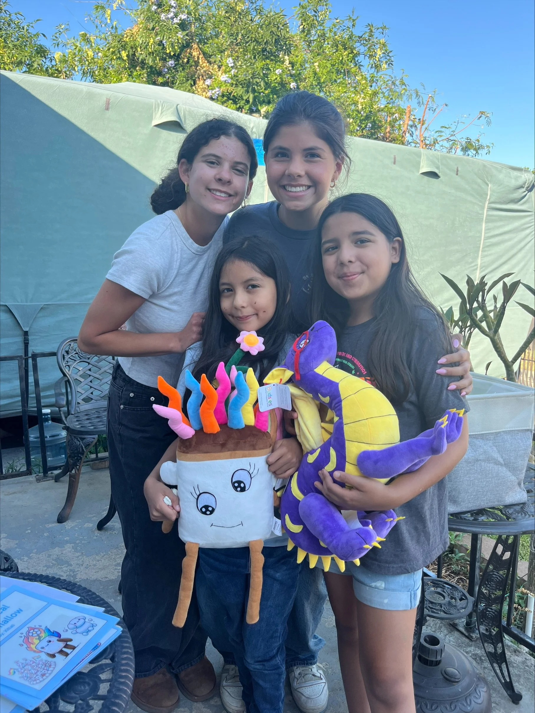 Each of the girls begun by creating a drawing of their MOST creative made up character. They were given full ability to make the drawings as colorful and magical as they wanted. Additionally, with the help of an outline Maya and Abby provided, they each created an expansive and enticing story about their characters. This included who their character was, the challenges they would face, and how they overcame them. Maya and Abby guided them through this process and assisted them when asked, but primarily wanted the girls to let their brains do the thinking! Away from the in person meetings, Maya and Abby came together to expand the outline and create it into a short storybook. The whole project came together when Maya and Abby printed and laminated the storybooks and when Budsies sent the perfectly curated stuffed animals, identically replicating the girls drawings. When Maya and Abby revealed the girls creations to them, the sisters were blown away!